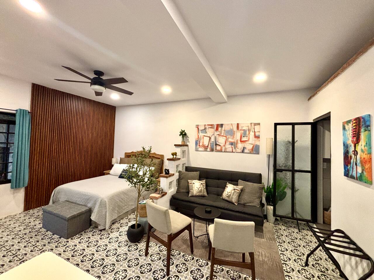 Charming and Spacious 2 Bedroom Apartment in the Heart of the Romantic Zone Please note the entire building has gone through a top to bottom renovation, completed in January 2025. Literally, everything is brand new. Please check back here soon for more photos of the finished product! In the meantime, we’ve included a couple of artist renditions where final photos are not yet available. Discover the perfect getaway for friends or family in this spacious apartment, ideally situated just a 15-minute stroll from the stunning Playa Olas Altas and minutes away from dozens of great restaurants, bars and art galleries. Designed for your comfort and convenience, this affordable retreat offers a blend of relaxation and accessibility. The property is configured as two standalone studios that share a common patio and can be connected together for a larger group of up to 6 to rent. The first studio includes a living area, sleeping area, a full bathroom and fully equipped kitchen. If you are just 2-4 people look for our separate listings for the individual studios. Step through another door to find a delightful private and secure patio, an ideal spot to unwind with a book, enjoy your morning coffee or break bread with friends or family in the intimate outdoor dining space. The patio has nice views, comfortable seating and a dining table to seat 4-6 people. Think of this as your outdoor living room where you can embrace the tradition of indoor-outdoor living which is so typical in PV's near perfect climate. The second bedroom, which is accessed from the patio, boasts a comfortable full-size double bed, plenty of closet space, a full bathroom with shower and brand new kitchenette and fold down dining table. Whether you're traveling with friends or family, this apartment effortlessly accommodates your needs without breaking the bank. Located in the vibrant Romantic Zone, you'll have easy access to local attractions, dozens of great dining and bar options, and beautiful beaches just a short walk away.
