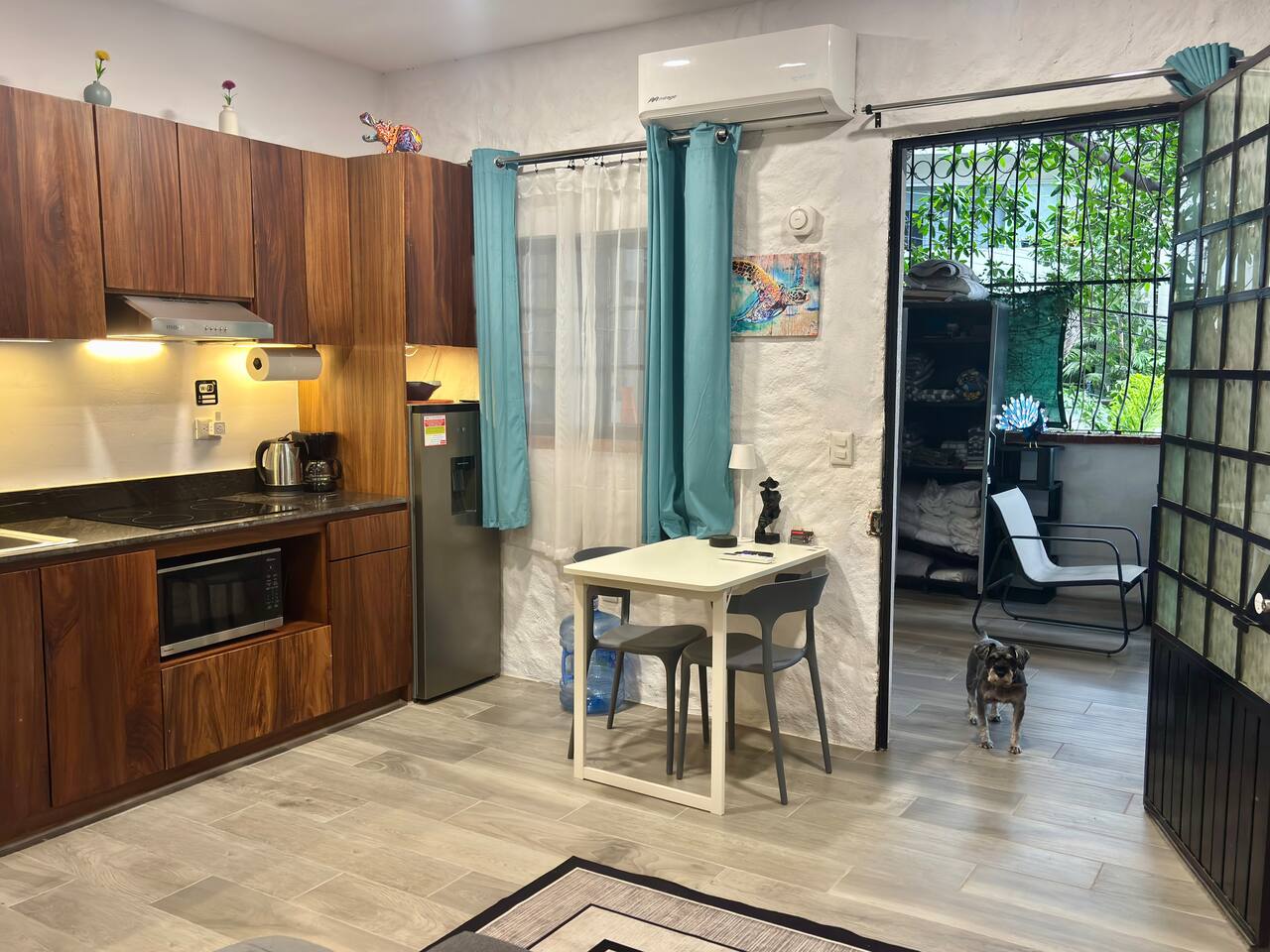 We want our guests to know exactly what they are getting before they decide to book so we do our best to describe the place as accurately as possible in our listings. A few details to highlight for you for this unit so there are no surprises are as follows: - The patio for Studio B2 is shared with the adjacent 2-4 person Studio B1. Each unit has its own separate entrance. If you are traveling with others you can book both B1 and B2 as a 2-bedroom under our listing for "Unit B" - The window and patio door for B2 open onto the shared patio. Sheer curtains and nighttime blackout curtains are provided for your privacy - Because our units are pet friendly it is possible that there could be pets sharing the patio area from the adjacent unit, though most bookings don't include any pets - There is a nice view from the patio across old town towards the ocean but there is not a view from inside this unit. For panoramic views from a large private roof deck complete with outdoor kitchen please check out our listing for Unit C in the same building - Due to space constraints there is no wash basin inside the bathroom (there is a toilet and good size walk-in shower) so guests use the kitchen sink which is right outside the bathroom door to wash hands and brush their teeth - The kitchenette has a mid-sized fridge freezer, microwave and 4 burner induction cooktop but no oven - There is no in-unit laundry in this studio but you will find a very affordable laundry service just down the street After booking we will provide a link to our detailed guide to the property as well as our pretty comprehensive personal guide and recommendations for things to do in PV, including lots of off the beaten path hidden gems that many tourists aren’t aware of and we hope you will take advantage of! Please check it out before your arrival and plan out some of your favorite activities, especially any organized tours that tend to book up well in advance. We know you will have an amazing stay here in PV and are happy to assist in any way we can. Since things just wouldn't be complete without leveraging some artificial intelligence we have created our very own chat bot called “PV Pam”! Pam is trained on the property as well as everything we know about PV. Watch out for the link via your airbnb inbox or access it at the bottom right corner of any page in our guidebook. You can ask Pam anything, get recommendations or even have her build you a detailed vacation itinerary based on your interests. Pretty cool!