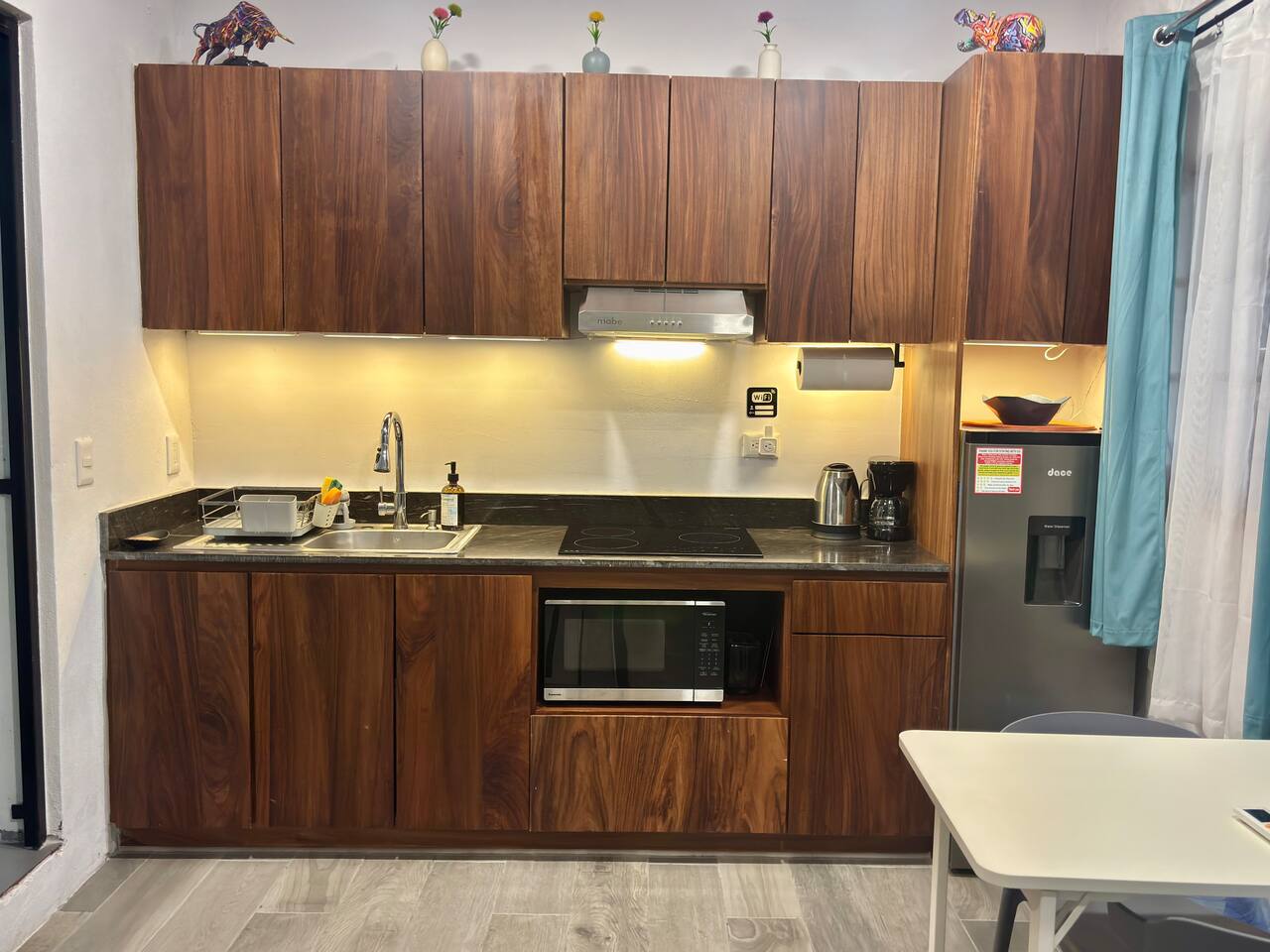 Charming Studio in the Heart of the Romantic Zone - Studio B2 Please note the entire building has gone through a top to bottom renovation, completed in January 2025. Literally, everything is brand new. Discover the perfect getaway for friends or family in this spacious studio, ideally situated just a 11-minute walk from the stunning Playa Olas Altas and minutes away from dozens of great restaurants, bars and art galleries. Designed for your comfort and convenience, this affordable retreat offers a blend of relaxation and accessibility. Enter from a gated entrance onto the shared patio and onwards into unit B2. You’ll be welcomed by a brand new fully equipped hardwood kitchenette and a brand new en-suite bathroom with shower as well as a full-size double bed and plentiful closet space. Everything is brand new as of January 2025. Step out onto the large secure patio, shared with the adjacent 2-4 person Studio B1. The patio has a nice view and includes comfortable sitting and dining areas. It’s a great spot to unwind with a book, enjoy your morning coffee or take in the nightly fireworks. Think of it as your outdoor living and dining room where you can embrace the tradition of indoor-outdoor living which is so typical in PV's near perfect climate. Whether you're traveling with friends or family, this apartment effortlessly accommodates your needs without breaking the bank. Located in the vibrant Romantic Zone, you'll have easy access to local attractions, dozens of great dining and bar options, and beautiful beaches just a short walk away. Please note: For groups up to 6 people or those wanting separate private bedrooms, or exclusive use of the large patio, you can rent Studios B1 and B2 together under our separate listing for “Unit B”.